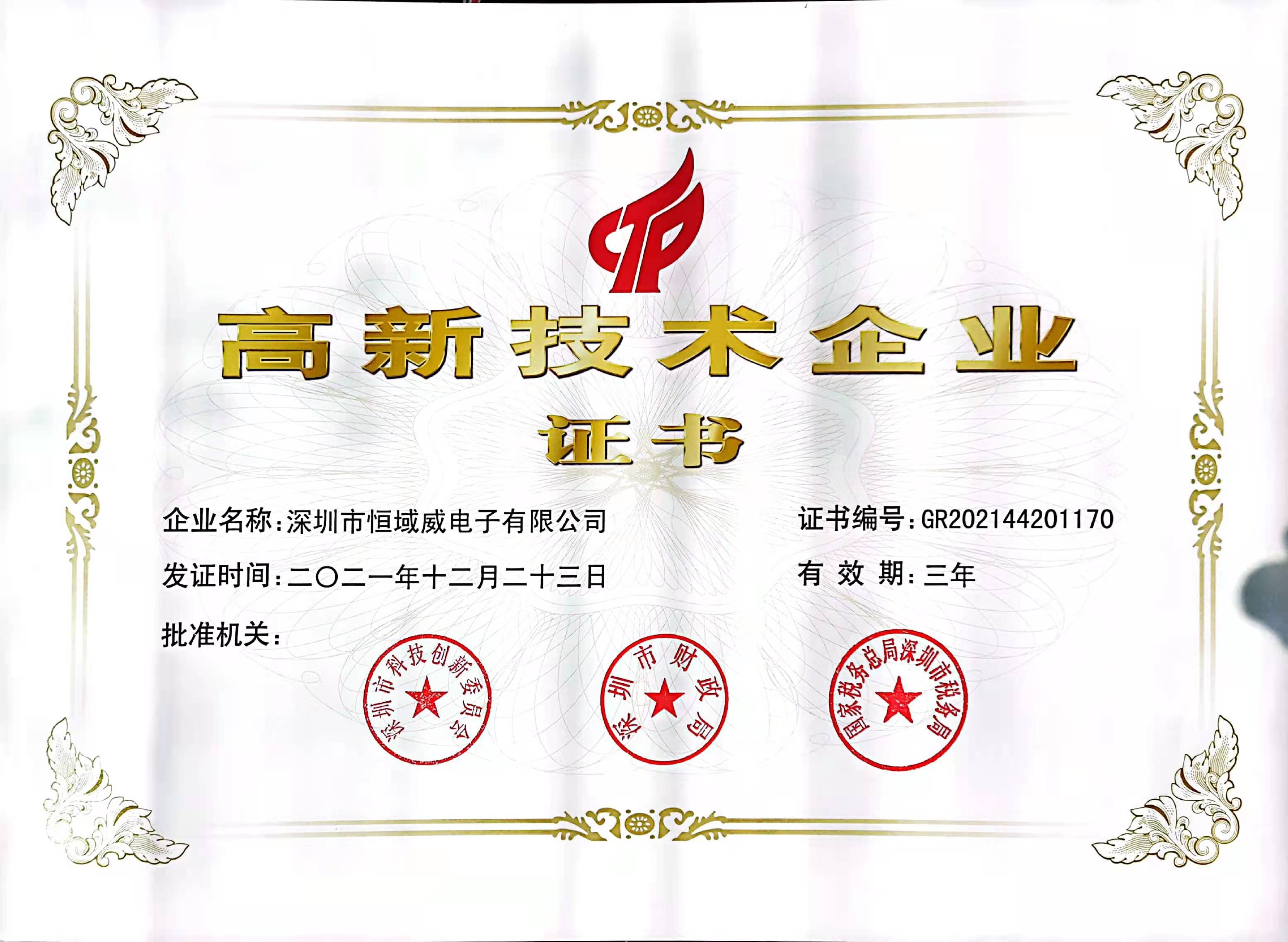 热烈祝贺我公司荣获“高新技术企业” 殊荣!