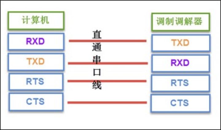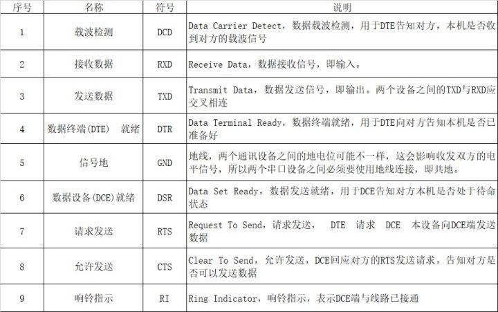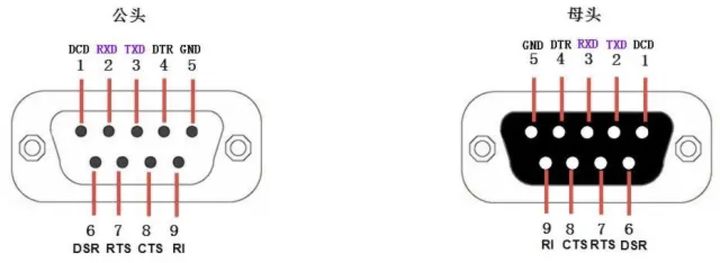上表中的是计算机端的DB9公头标准接法,由于两个通讯设备之间的收发信号(RXD与TXD)应交叉相连,所以调制调解器端的DB9母头的收发信号接法一般与公头的相反,两个设备之间连接时,只要使用”直通型”的串口线连接起来即可。