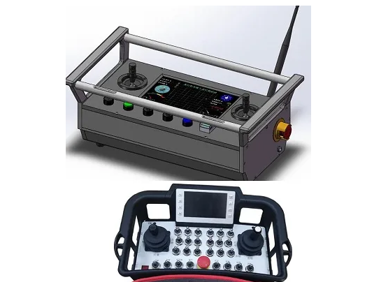 一、基本定义 工业无线彩屏遥控器是专门用来控制工程机械或工业设备的远程无线遥控装置。主要用于工业行车、冶金、造船、集装箱码头、仓储、机械制造、化工、造纸、建筑、消防和工程机械等使用起重机械并使之实现遥控操作的行业。工业无线技术、人机监控、CAN通信技术,RFID识别技术,其有效控制范围为半径100米的任何方位且不受障碍物的影响,操作人员只需携带轻巧的发射器,自由走动并选择最佳(安全)视觉位置实行操作,清除以往由于视线不清、线控束缚、环境恶劣或指挥配合不当等因素造成的事故隐患。即保证了安全操作又大幅度提高了生产效率。