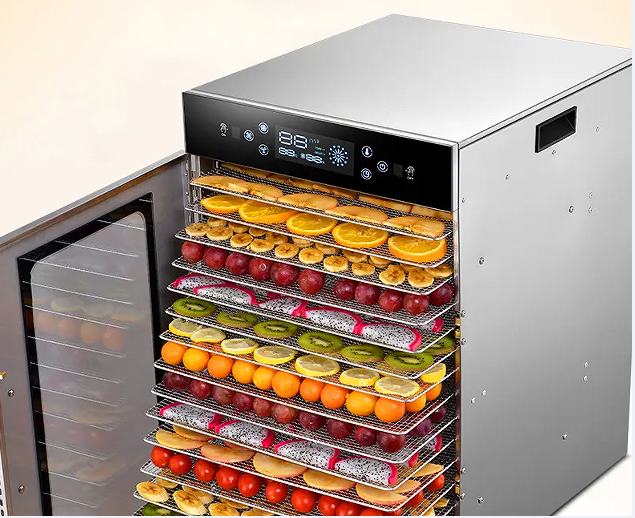 随着居民日常消费的升级,人们对生活质量以及营养摄入的要求越来越高,休闲娱乐支出占比也逐步增长,当人们开始追求饮食的质量而非单纯饱腹时,就给休闲食品的消费带来了新的增长点。休闲食品中的干果类食品一般富含蛋白质、油脂、矿物质、维生素较多,营养价值高,并且相对于新鲜蔬果而言,干果更方便携带和储藏,因此广受人们的欢迎。然而传统的干果加工方法仍存在诸如添加剂过度、晾晒不卫生、灰尘虫蚁过多等弊端,干果机的出现则有效解决了上述问题。 作为一种新型小厨电,干果机渐渐地出现在年轻家庭的厨房中,人们把它当成制作果干、肉干、蔬菜干、烘干药材、宠物食物、发酵酸奶等食品的神器。产品更新迭代的速度应跟进市场潮流趋势,在现如今厨电产品正朝着智能化方向发展的大趋势下,干果机产品也毫不例外的朝着智能化迭代更新,因此恒域威电子带来5寸串口屏应用于干果机上的解决方案,打造高端便携化差异,助力产品跑赢市场。
