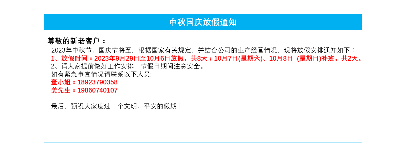 恒域威2023年中秋节、国庆节放假通知