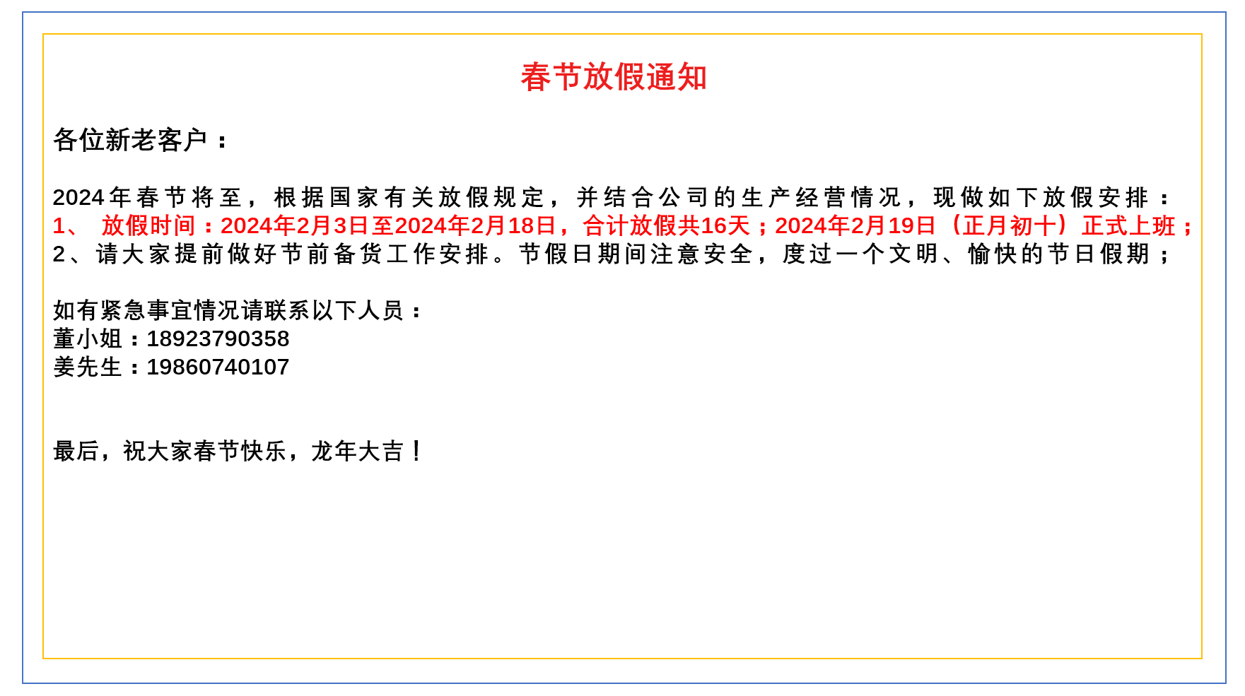恒域威2024年春节放假通知