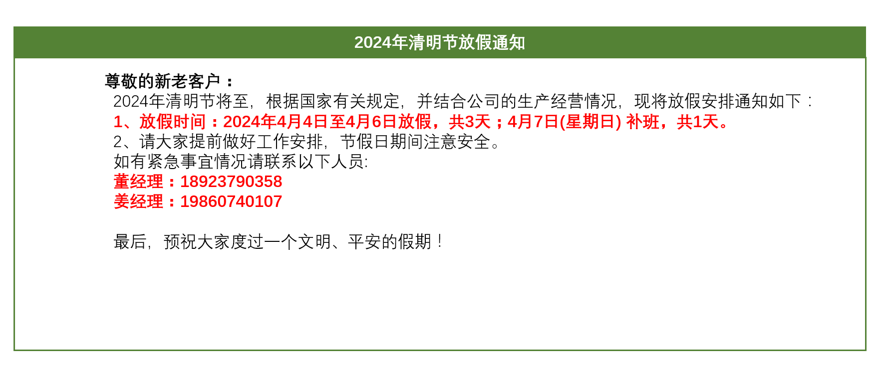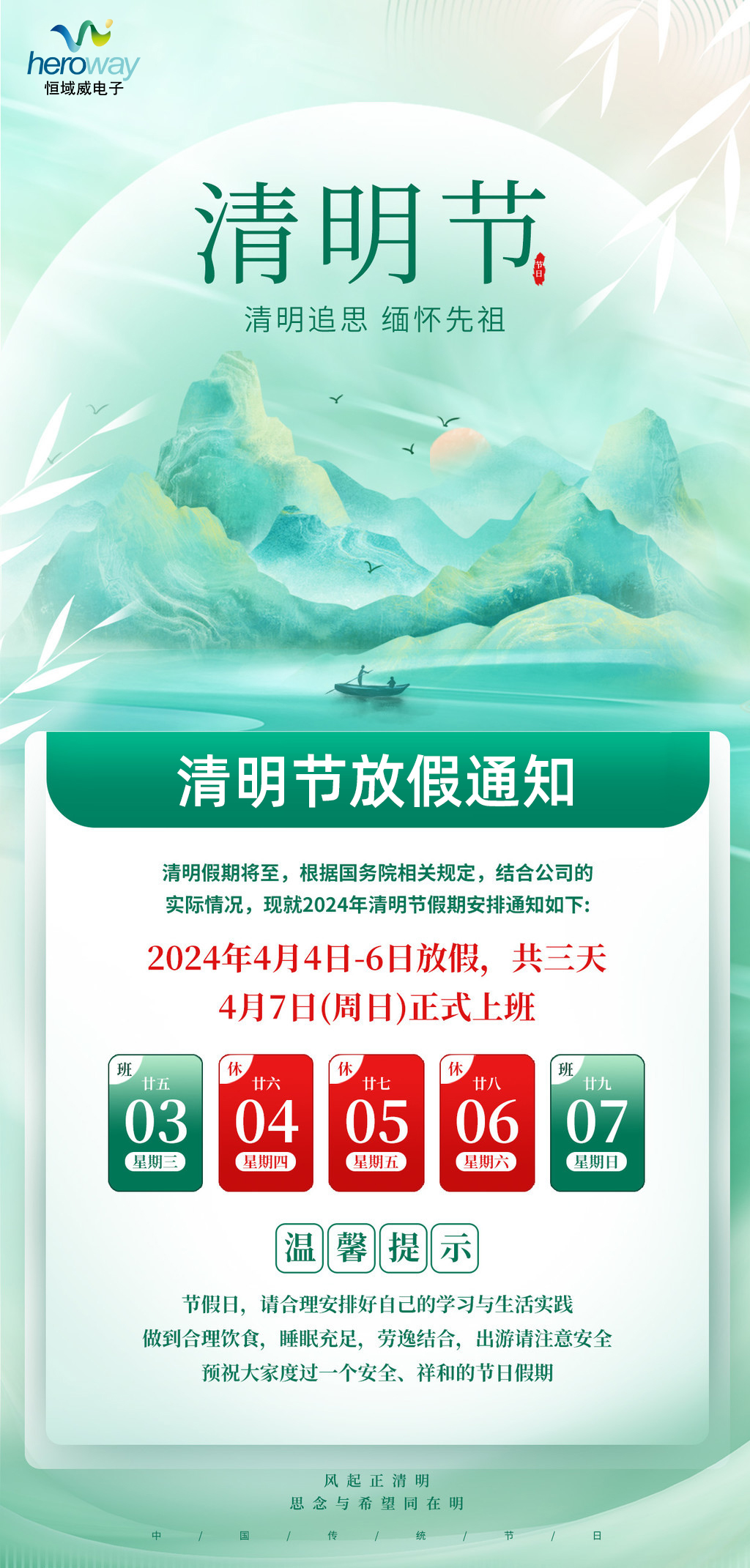 恒域威2024年清明节放假通知