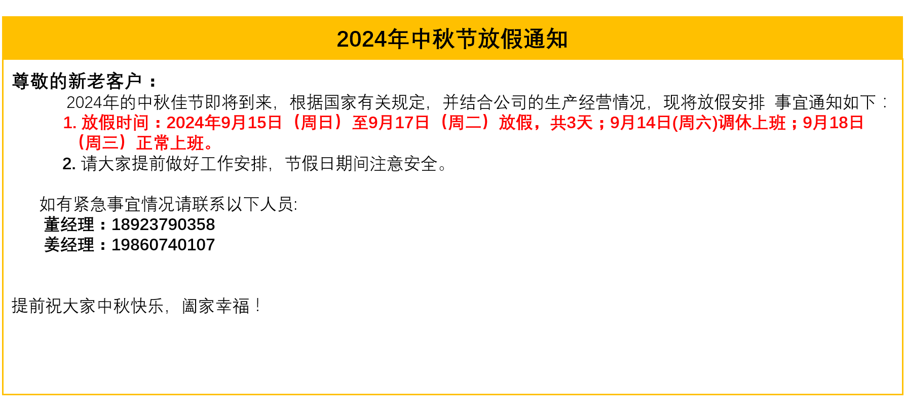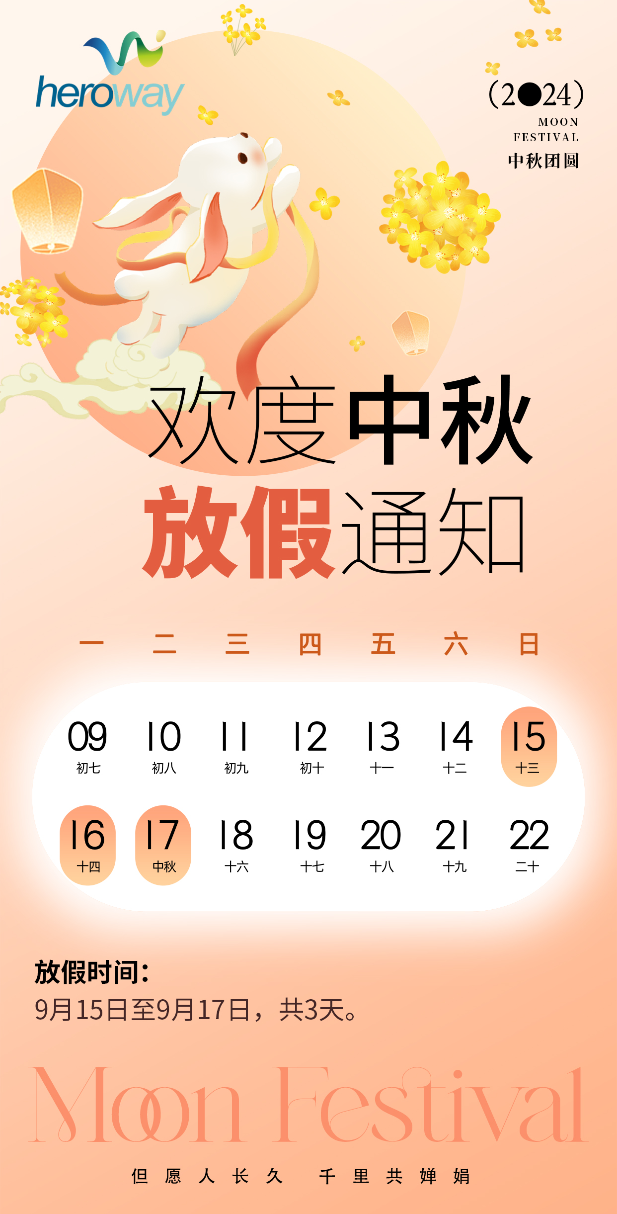 恒域威2024年中秋节放假通知