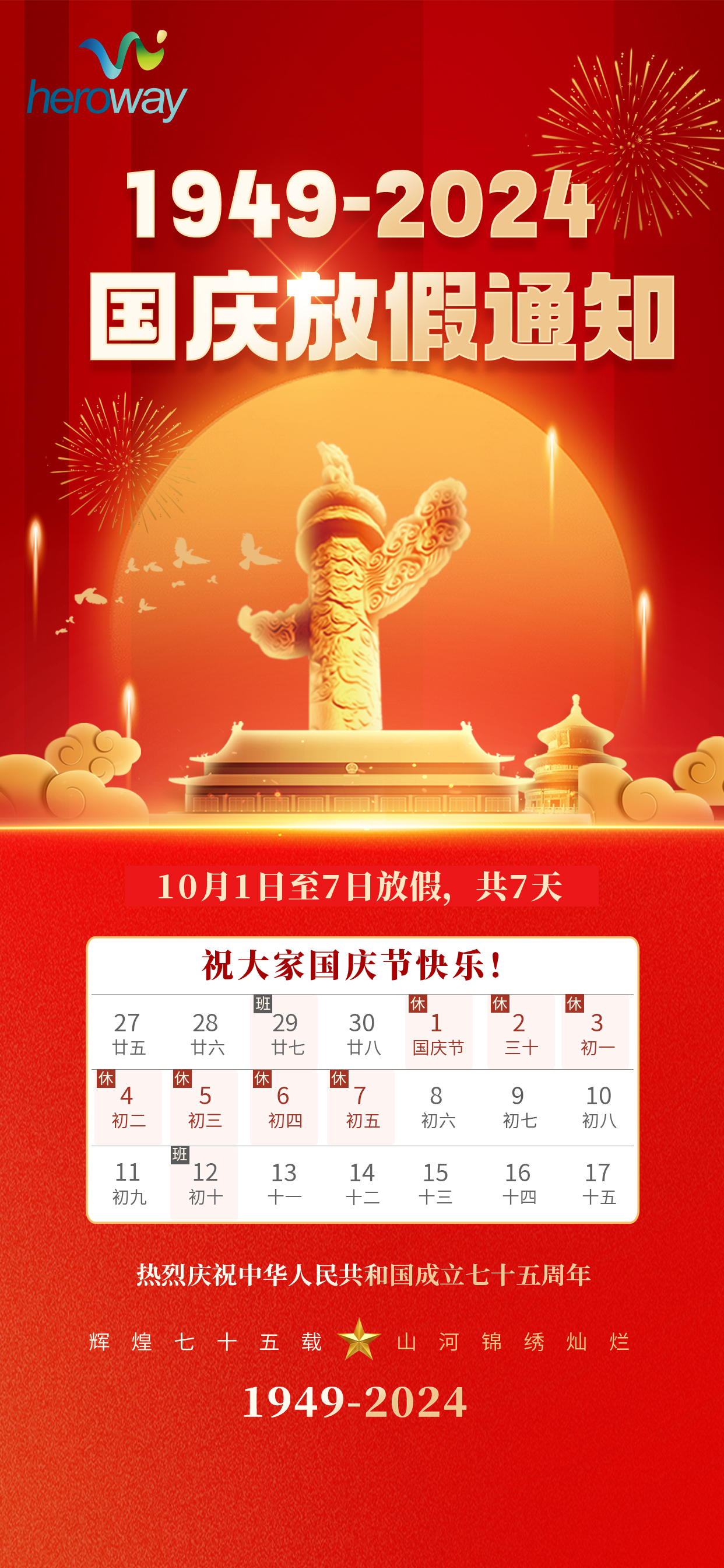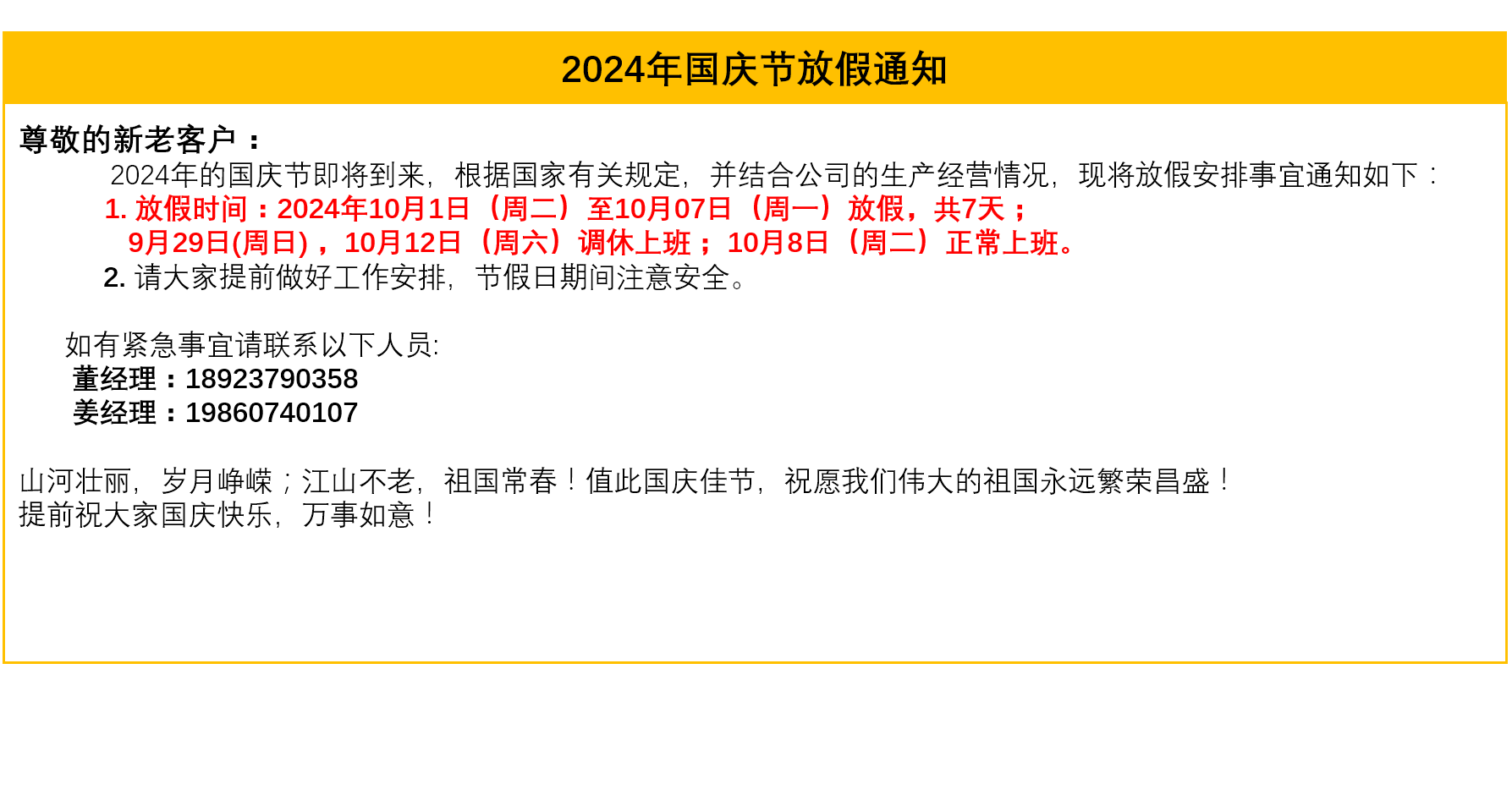恒域威2024年国庆节放假通知