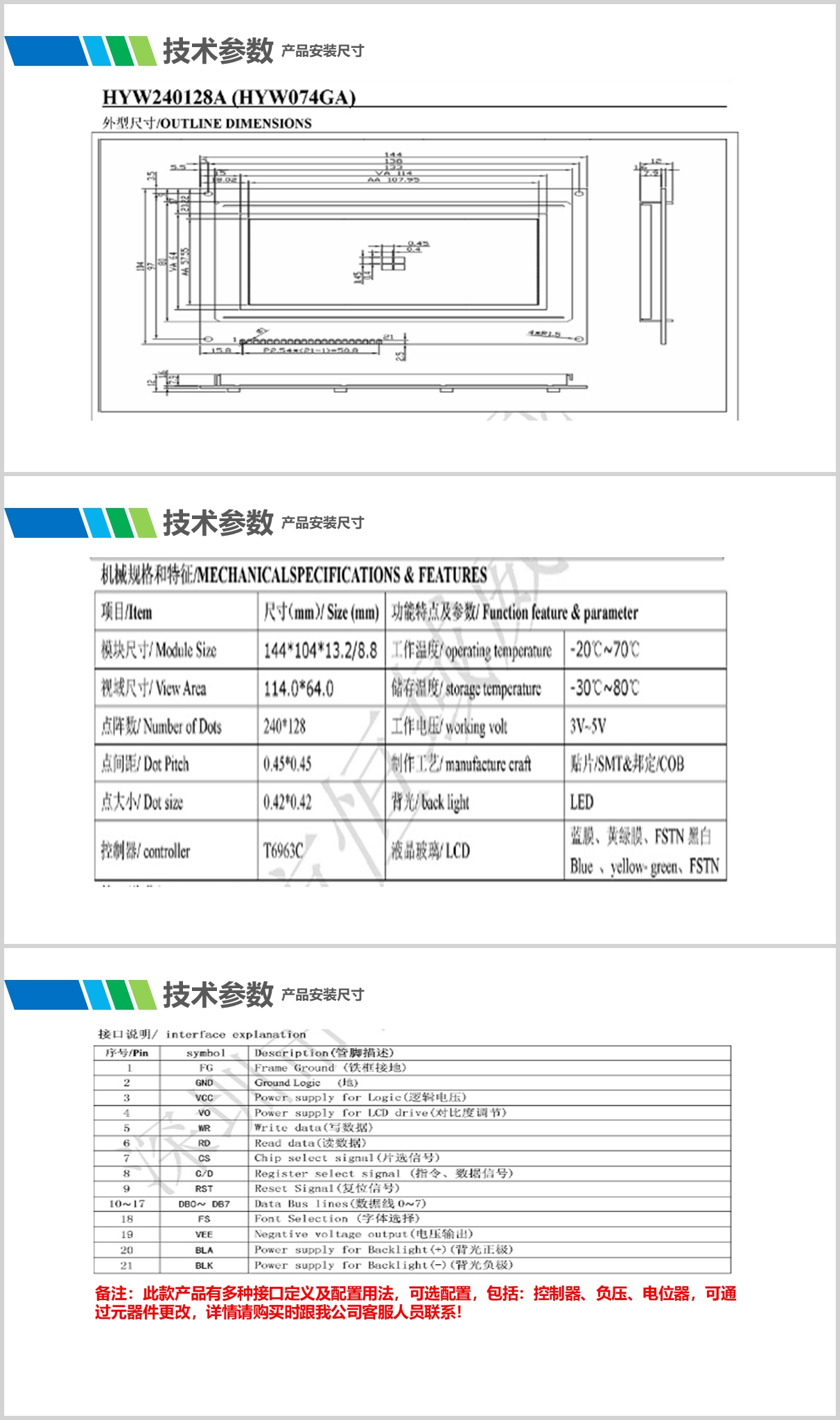 08:产品屏幕显示颜色及亮度可选,多个接口配置可选,触摸屏配置可选。