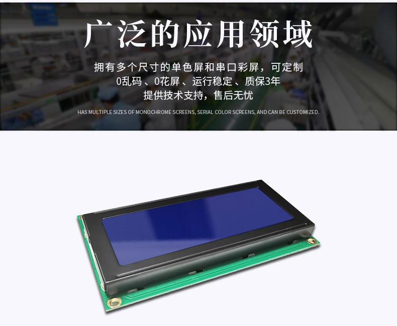 恒域威19264A单色屏-抗干扰工业模组-储物柜液晶显示屏-蓝底白字不带字库