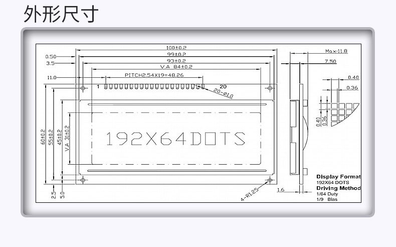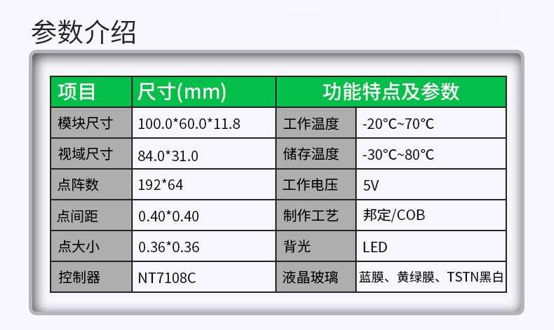 恒域威19264A图形点阵工业液晶屏-大小文字显示5V不带字库