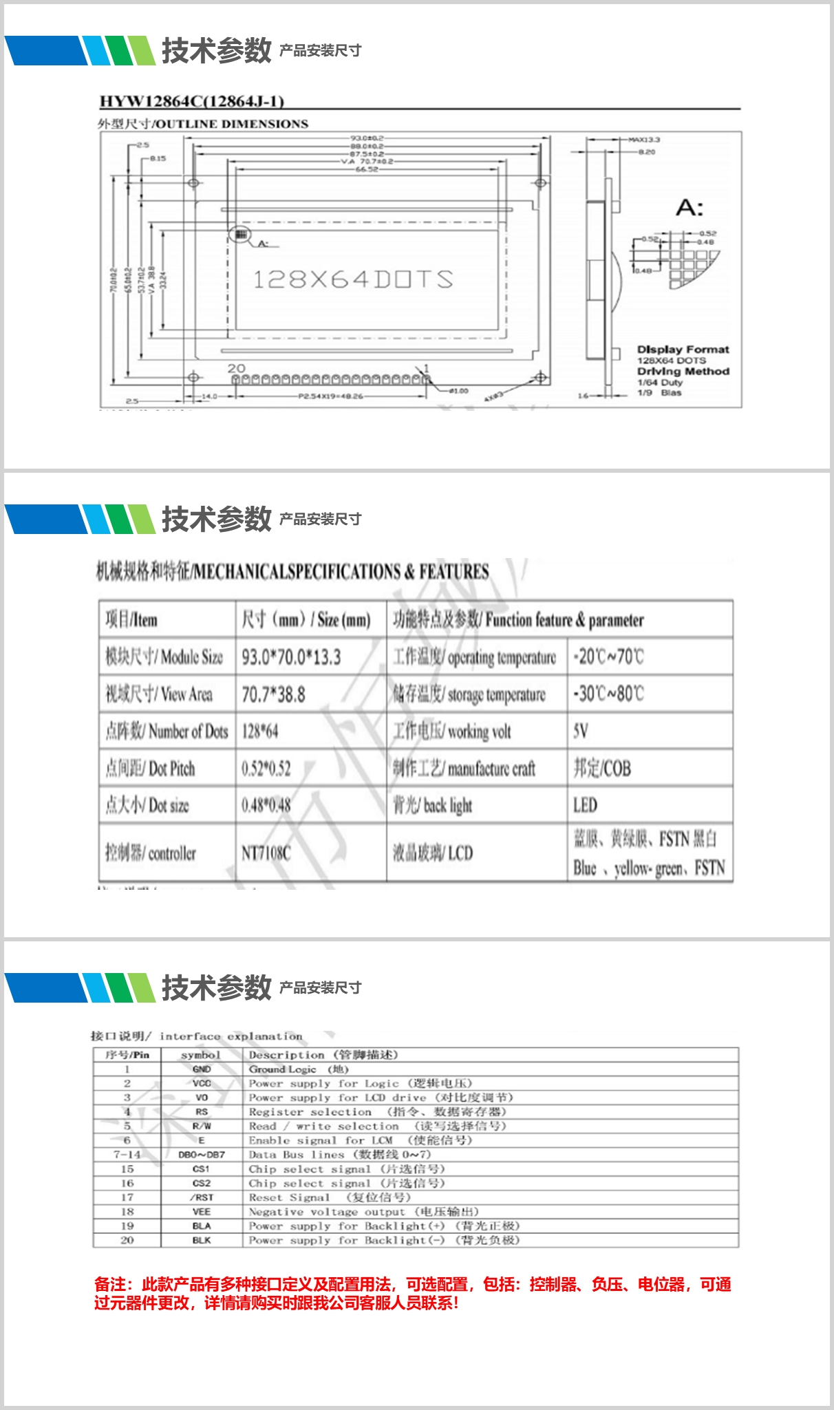 08:产品屏幕显示颜色及亮度可选,多个接口配置可选,触摸屏配置可选。