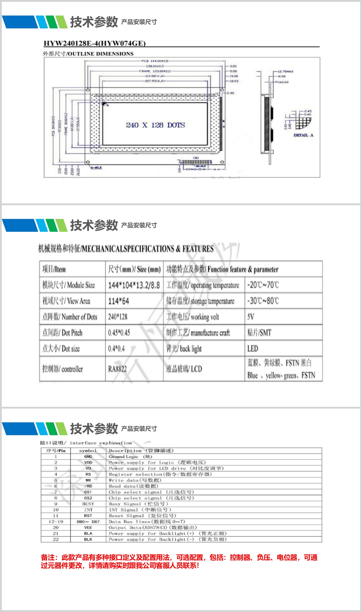 08:产品屏幕显示颜色及亮度可选,多个接口配置可选,触摸屏配置可选。