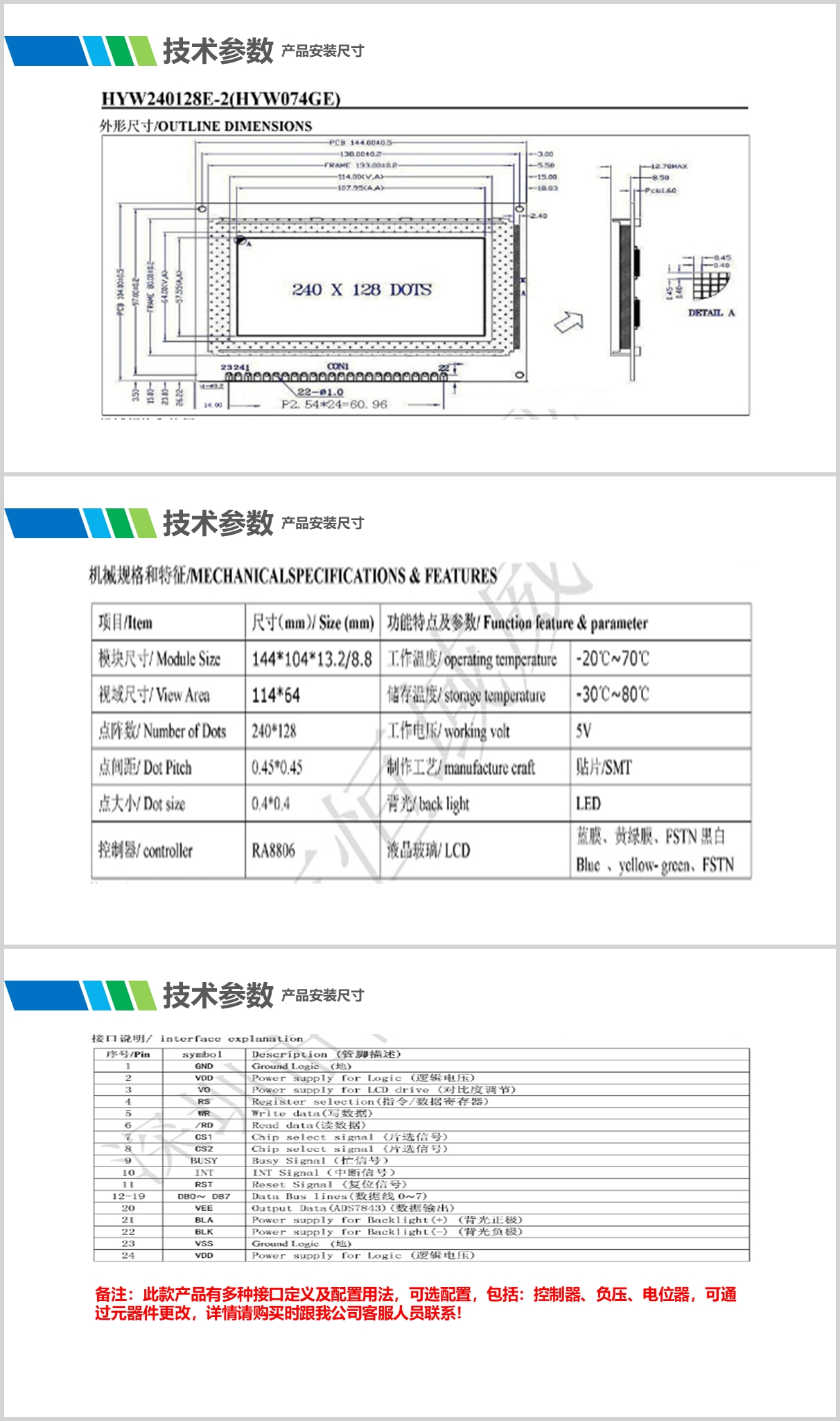 08:产品屏幕显示颜色及亮度可选,多个接口配置可选,触摸屏配置可选。