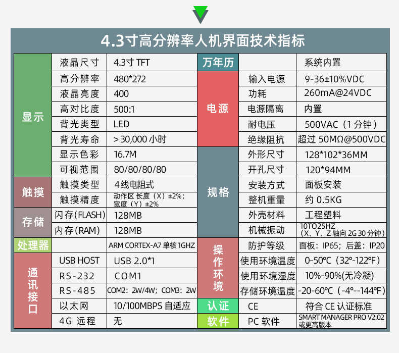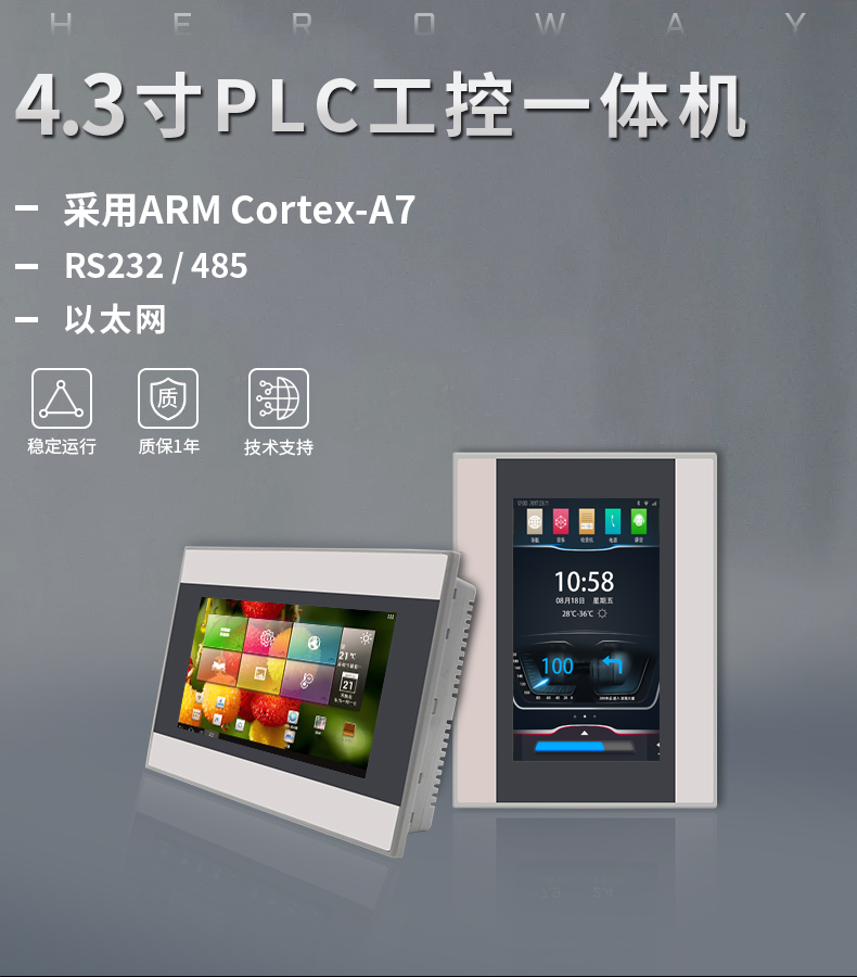 恒域威4.3寸工控触摸屏PLC一体机编程温度控制人机界面 带网口