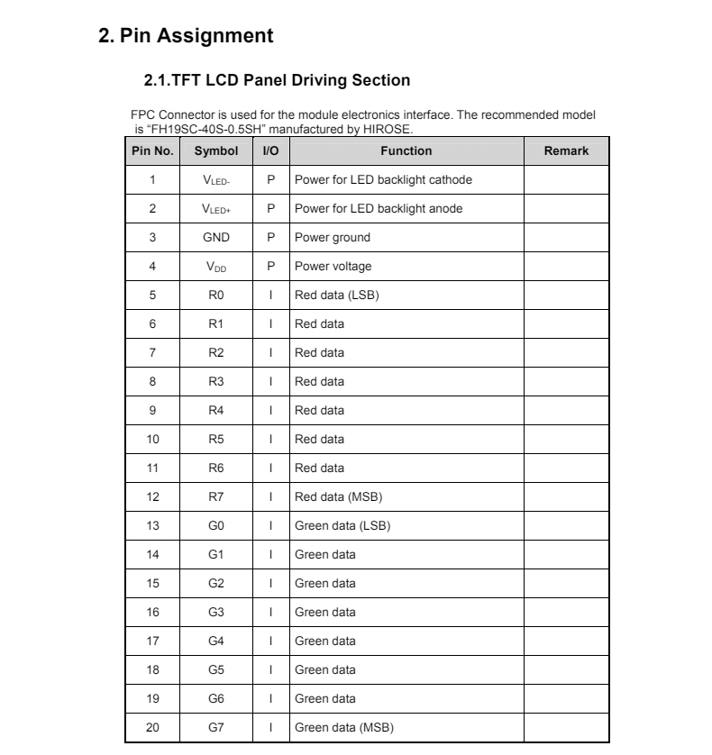 TFT彩屏RGB接口系列