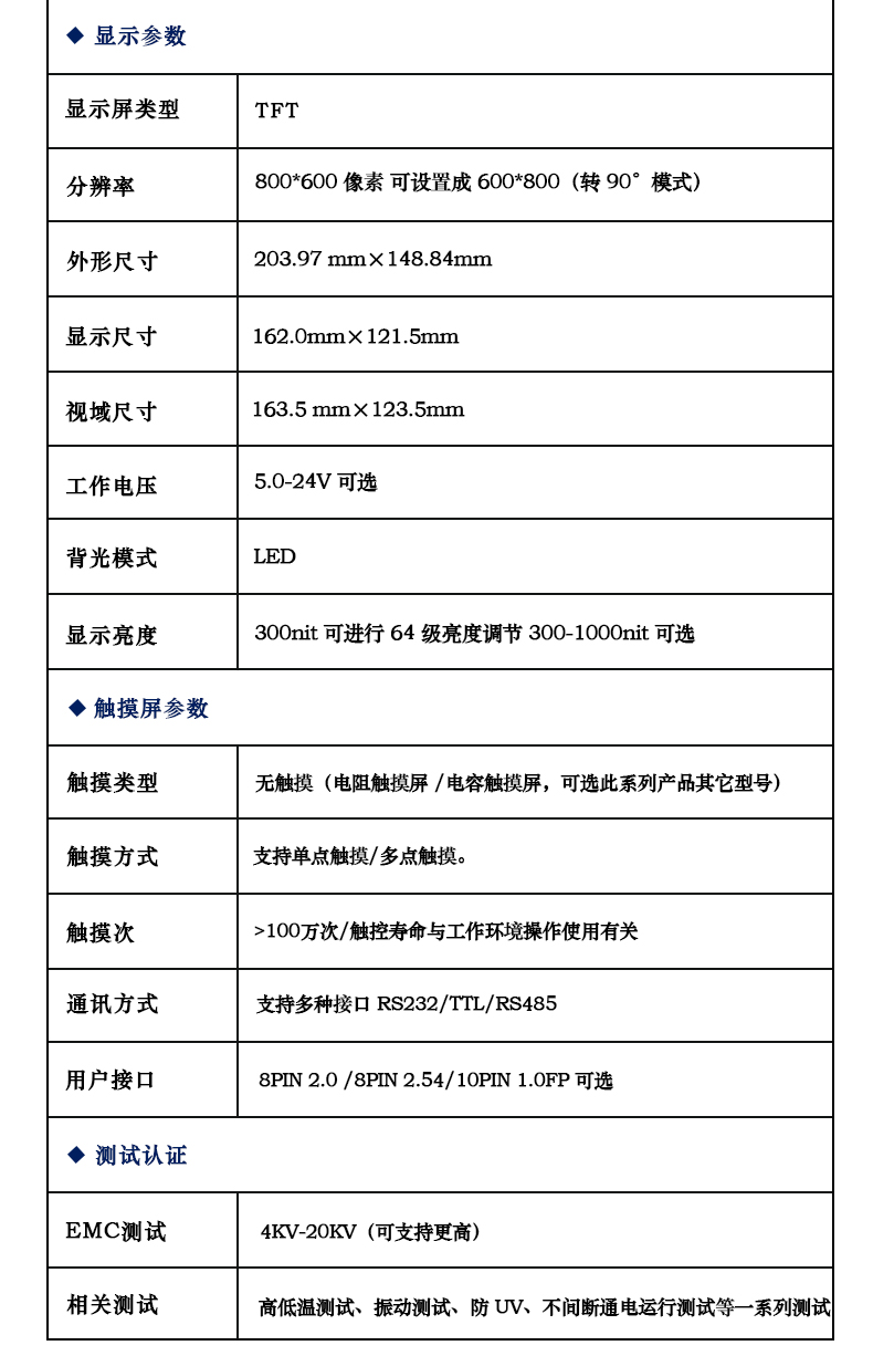 HYW080F3.0/8寸带电容触摸 232/485HMI组态液晶屏