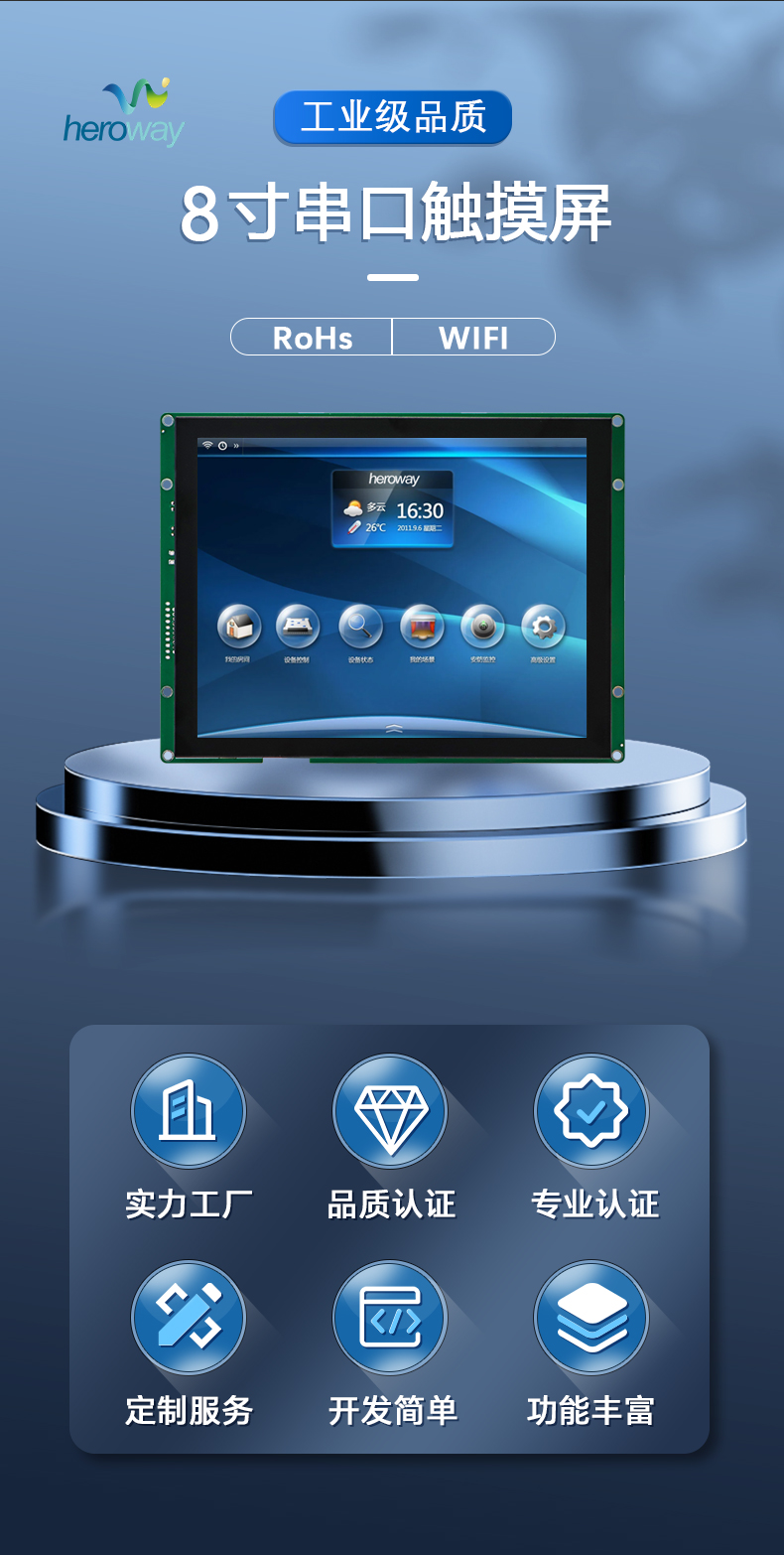 05:恒域威智能串口屏系列产品,采用恒域威定制芯片H8。