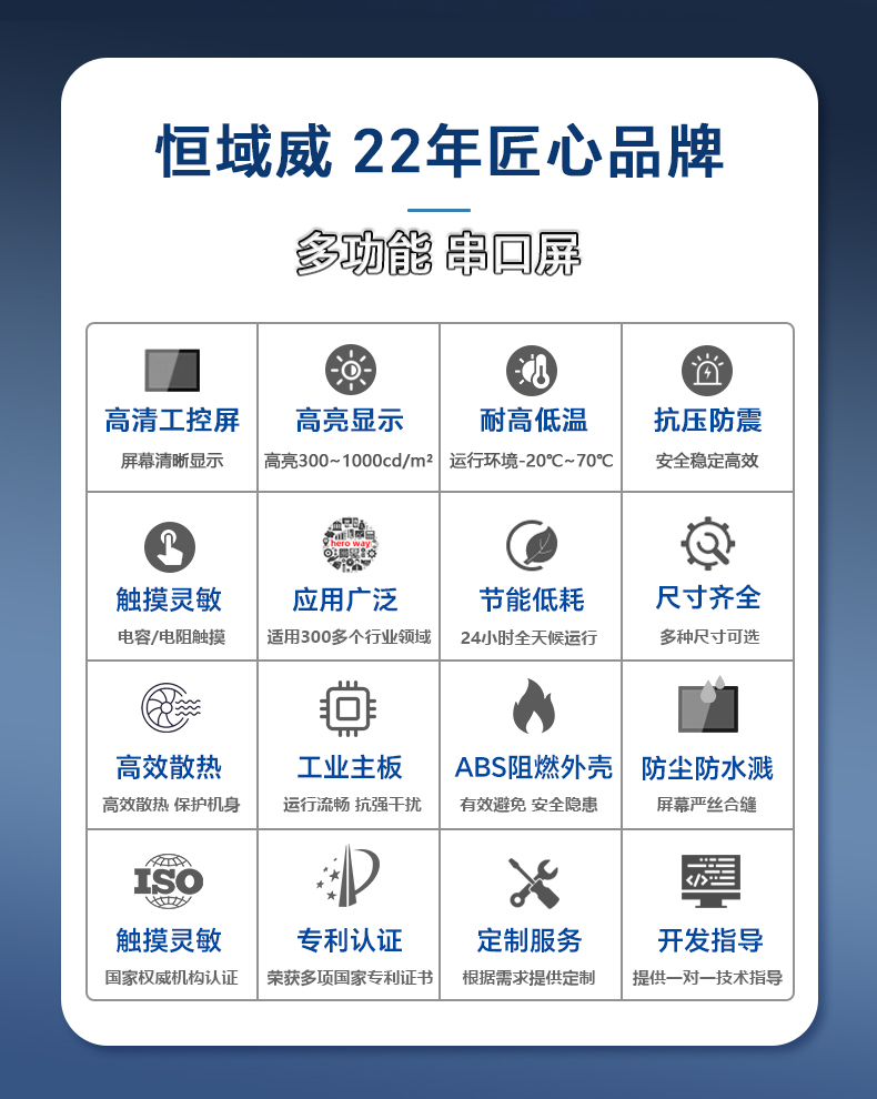 05:恒域威智能串口屏系列产品,采用恒域威定制芯片H8。