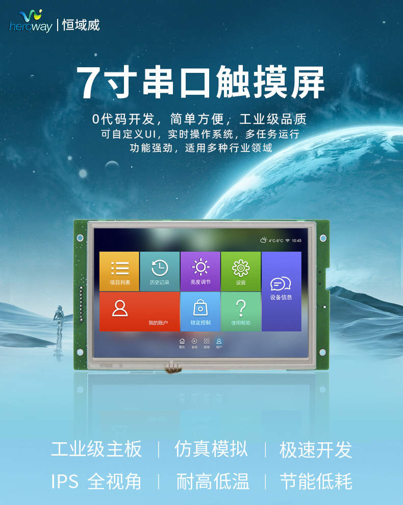 05:恒域威智能串口屏系列产品,采用恒域威定制芯片H8。