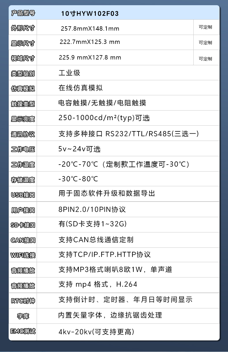 HYW101F 电阻触摸 通信支持RS232/TTL/485 音频播放