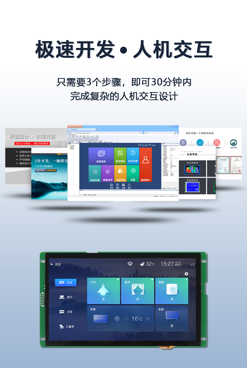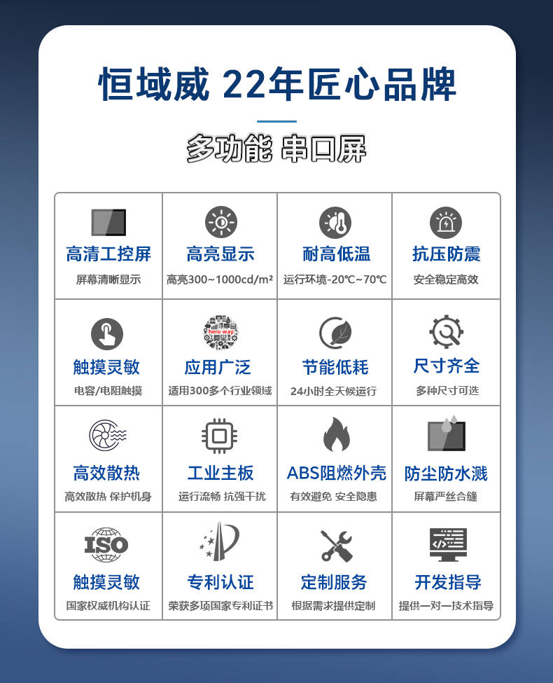 05:恒域威智能串口屏系列产品,采用恒域威定制芯片H8。