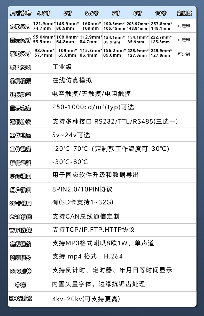 05:恒域威智能串口屏系列产品,采用恒域威定制芯片H8。