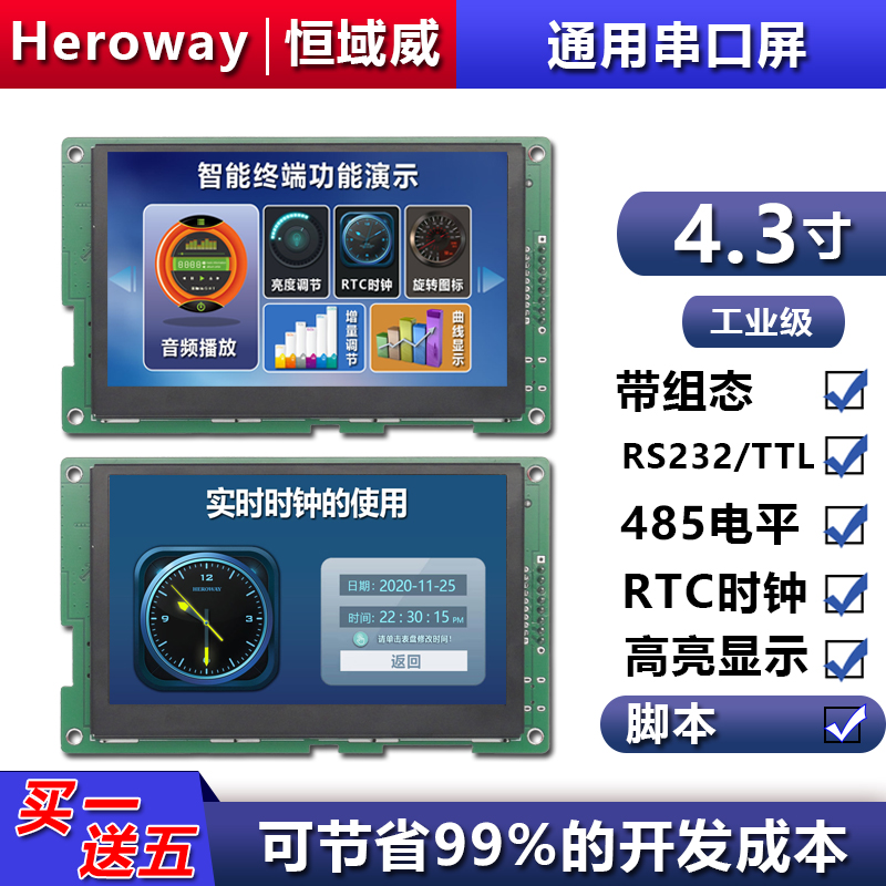 恒域威4.3寸串口电阻触摸HMI组态屏232工业显示屏LCD液晶模块