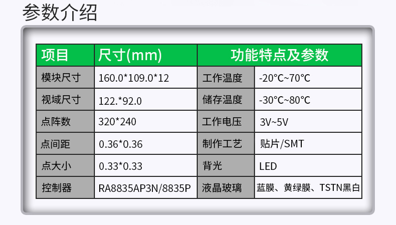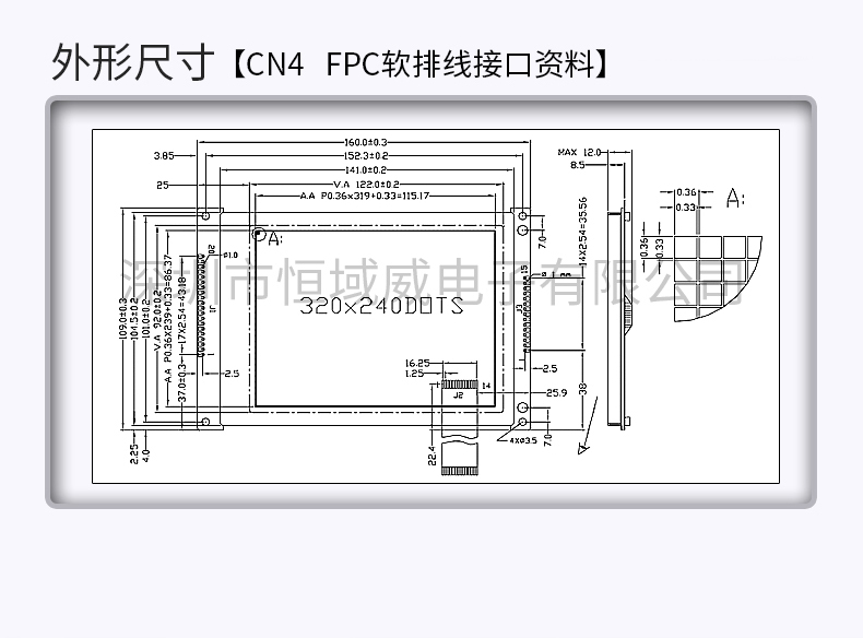 恒域威320240B图形点阵液晶屏320*240分析仪器专用显示模组灰白屏带控制