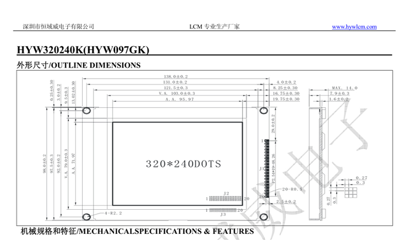 恒域威5.1寸图形点阵320240K-注塑机机床工控液晶显示屏-LCM模组