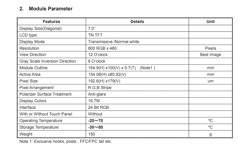恒域威 工控医疗仪器设备专用7寸TFT液晶屏 800*480 亮度可选