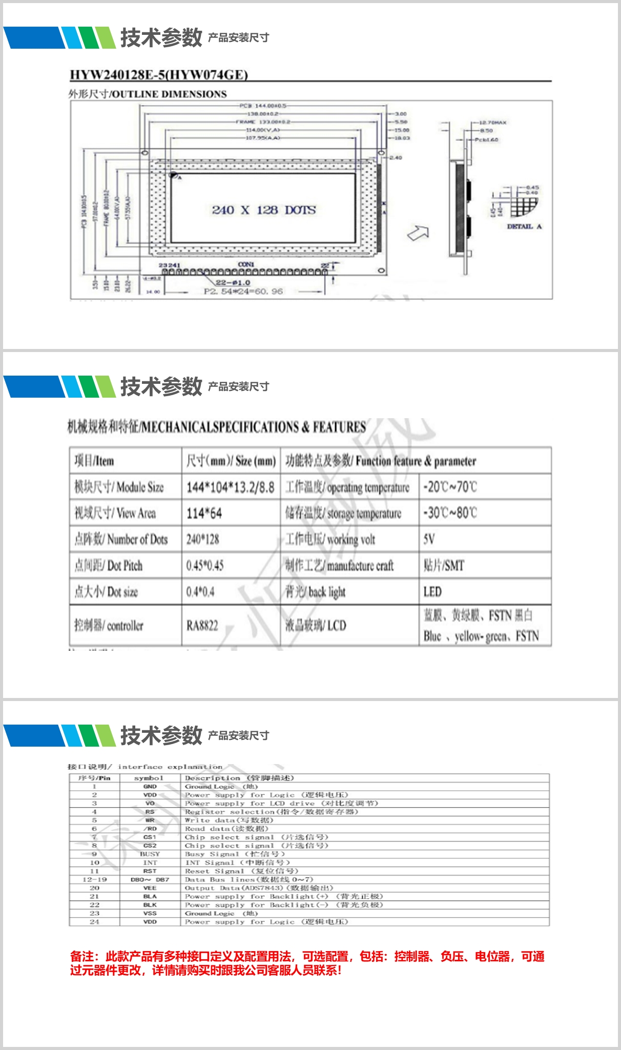 08:产品屏幕显示颜色及亮度可选,多个接口配置可选,触摸屏配置可选。