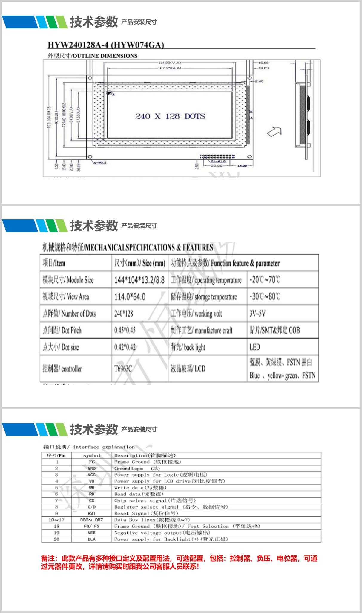 08:产品屏幕显示颜色及亮度可选,多个接口配置可选,触摸屏配置可选。